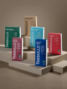 La gamme TASSULLO Murs comprend des systèmes intégrés d’une qualité et d’une fiabilité exceptionnelles, avec des produits pour la réalisation de stratigraphies murales : mortiers de pose pour maçonnerie de tous types, mortiers de construction, enduits, plâtres, mortiers stratigraphiques et enduits de finition aux propriétés variées et adaptés à de nombreux domaines d’application. L’utilisation de matières premières pures de la plus haute qualité permet de produire des composés à faible impact environnemental, offrant une résistance mécanique adéquate et une excellente respirabilité.